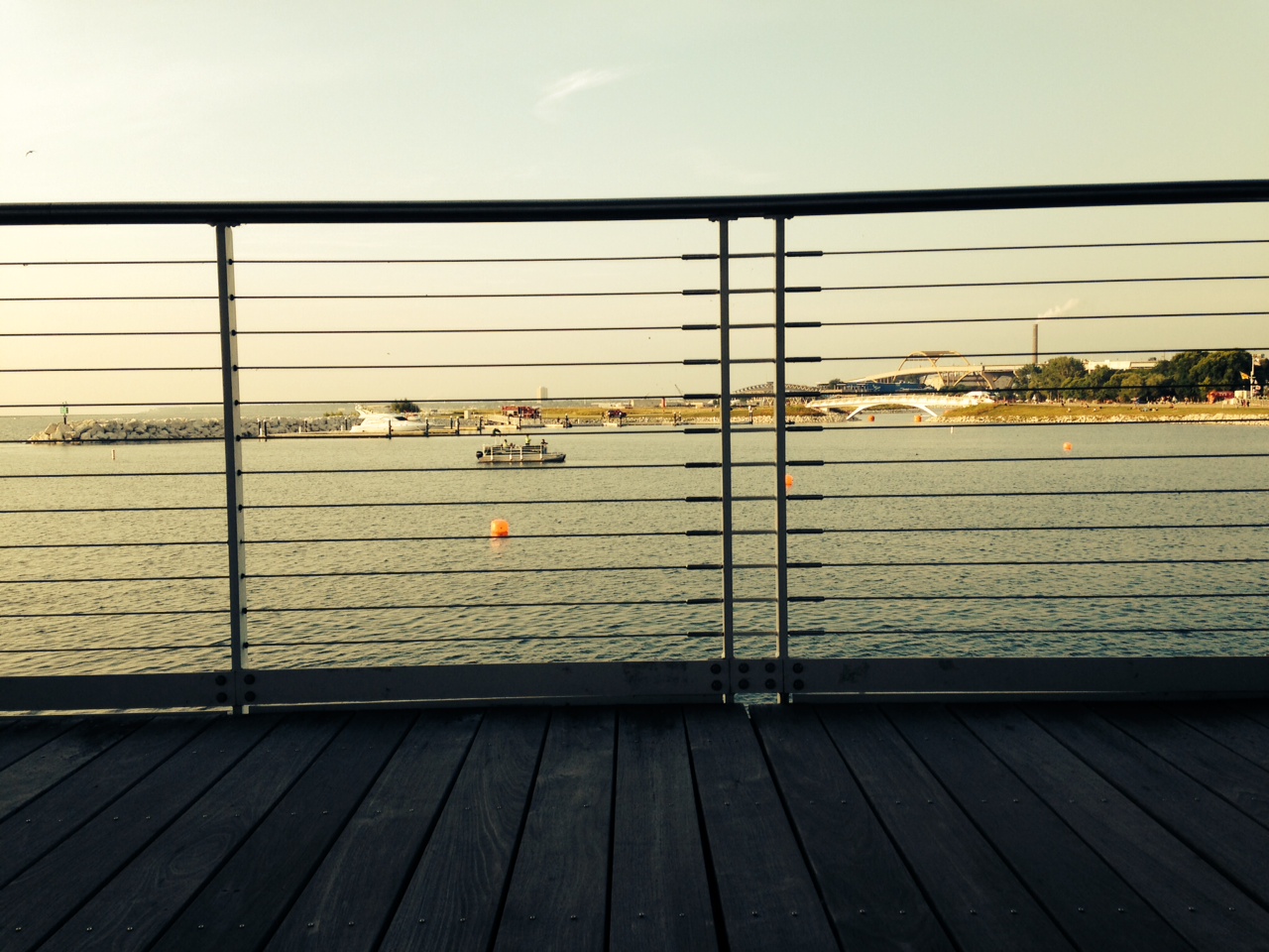 photo 3-2I set my sights out a few hundred yards to the center of the bridge we had to swim under, and we were off. I had clean water immediately and was able to get a good pace going. After swimming under the bridge I was headed close to shore in hopes of traveling the shortest distance possible to the next buoy. Swimming near shore I could hear Stopwatch Greg yelling “Go Heath!” How cool is that? You rarely can hear your fans from the water so it was encouraging to have a little push in the swim.   I rounded the buoys and headed back towards the bridge where we’d be exiting the water. I only passed two men during the swim due to the extra long delay between heats.