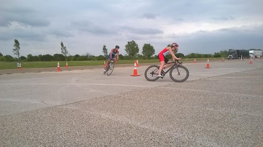 Unfortunately the race directors had a string of bad luck with the first race. The park where the race was going to be held revoked their permits two weeks before the race. The race directors worked diligently to find a new location that would work but they were finally left with one option: bring in an above ground pool. When the pool arrived they surveyed the land and realized the pool wouldn’t work at the race site. Due to this, they unfortunately had to cancel the amateur race but they were able to throw together a pretty awesome course for the pros in the convention center parking lot. The race consisted of a 1 mile run (2-loops), a 3.5 mile technical bike (5 loops) and a .5 mile run (1 loop).
